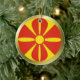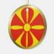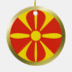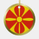Auf beiden Seiten dieses Ornaments hat sich die Fahne Nordmakedoniens zu einem Kreis mit goldenem Rand gewandelt. Einfache nordmazedonische Dekoration für Ihre Zuhause.