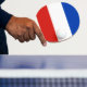 Ping Pong Paddle mit der Flagge von Schleswig-Holstein; Design mit horizontaler Trifarbe rot, weiß und blau
