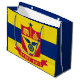 Große Geschenktasche mit der Flagge der Stadt St. Paul, Minnesota; Flagge mit drei horizontalen Streifen von blau und gelb mit rotem Emblem in der Mitte