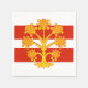 Papierserviette mit Design mit einer Fahne des historischen Landkreises von Westmorland, England, Großbritannien; weiße und rot gestreifte Fahne mit goldenem heraldischem Apfelbaum in der Mitte