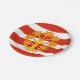 Papiertafel mit Design mit einer Fahne des historischen Landkreises von Westmorland, England, Großbritannien; weiße und rot gestreifte Fahne mit goldenem heraldischem Apfelbaum in der Mitte