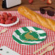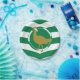 Papiertafel mit Design mit einer Fahne des historischen Landkreises von Wiltshire in England, Großbritannien; weiße und grüne Fahne mit gestreiften Streifen und großem Trubel in der Mitte