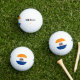 Golf Ball mit der Flagge von Albany, New York. Eine orange, weiße und blaue Fahne mit dem StadtEmblem in der Mitte