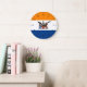 Uhr mit der Flagge von Albany, New York. Eine orange, weiße und blaue Fahne mit dem Stadtlogo in der Mitte