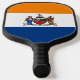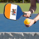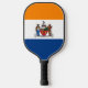 Pickleball Paddle mit der Flagge von Albany, New York. Eine orange, weiße und blaue Fahne mit dem Stadtlogo in der Mitte