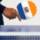 Ping Pong Paddle mit der Flagge von Albany, New York. Eine orange, weiße und blaue Fahne mit dem Stadtlogo in der Mitte
