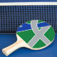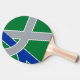 Ping Pong Paddle mit einem Design mit der Fahne von Albany, Oregon. Eine grüne, graue und blaue Flagge