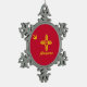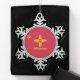 Snowflak Ornament mit der Stadt Albuquerque, New Mexico; rote Flagge mit gelbem Vogel und Symbol von New Mexico