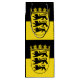 Weinbeutel mit variantenreicher Flagge Baden-Württembergs; Design mit zwei horizontalen Bändern schwarz-gelb (golden) und Emblem mit Schild mit drei schwarzen Löwen in der Mitte