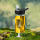 Wasserflasche mit der Flagge der Stadt Baltimore, Maryland; schwarze und gelbe Flagge mit einer Darstellung des Schlachtdenkmals