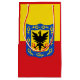 Papiertasche mit Design mit der Flagge von Bogota, Hauptstadt Stadt Kolumbien, rot-gelbe Fahne mit Wappen mit Adler in der Mitte