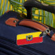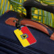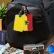 Gepäckanhänger mit der Flagge Bogotas, Hauptstadt Kolumbien, rote und gelbe Flagge mit Wappen mit Adler in der Mitte