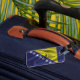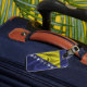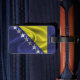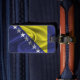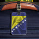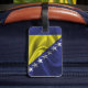 Gepäckanhänger mit der Flagge von Bosnien in gewelltem Stoffdesign. Dieses Design besticht durch die bosnischen Fahnen-Farben und das Design mit einem schönen, gewebten Materialeffekt. Dieses Flaggendesign ist eine großartige Möglichkeit, Ihnen zu zeigen, dass Sie stolz sind, aus Bosnien zu sein.