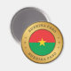 Die Burkina Faso Fahne ist in einen gerundeten Goldring aus Imitaten eingeprägt. Die Wörter "Burkina Faso" sind oben und unten im Design und haben einen gepressten Effekt. Das Paar von drei dekorativen Sternen zueinander, sind auch mit einem gepressten Effekt gestaltet.
