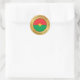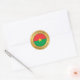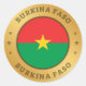 Die Burkina Faso Fahne ist in einen gerundeten Goldring aus Imitaten eingeprägt. Die Wörter "Burkina Faso" sind oben und unten im Design und haben einen gepressten Effekt. Das Paar von drei dekorativen Sternen zueinander, sind auch mit einem gepressten Effekt gestaltet.