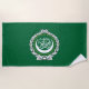 Dieses Design ist die Flagge der Arabischen Liga (offiziell als Liga der arabischen Staaten bekannt), einer regionalen Organisation in der arabischen Welt. Ihre Staaten befinden sich in Nordafrika, in der Western Afrika, in Ostafrika und in Western Asien. Die Arabische Liga wurde am 22. März 1945 in Kairo gegründet, zunächst mit sechs Mitgliedern: Ägypten, Irak, Transjordan (1949 in Jordanien umbenannt), Libanon, Saudi-Arabien und Syrien. Hauptziel der Arabischen Liga ist es, "die Beziehungen zwischen den Staaten der Mitgliedstaaten naher zeichnen und die Zusammenarbeit zwischen ihnen zu koordinieren, ihre Unabhängigkeit und Souveränität zu wahren und die Angelegenheiten und Interessen der arabischen Länder allgemein zu berücksichtigen". Die arabische Schrift auf der Flagge gibt den Namen der Organisation: "Liga der arabischen Staaten".