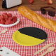 Papierteller mit Baden-Württemberg-Flagge; Design mit zwei horizontalen Streifen schwarz und gelb (golden)