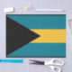 Dieses Design zeigt die Nationalflagge der Bahamas (offiziell als das Commonwealth der Bahamas bekannt), ein Land innerhalb des Lucayan Archipels der Westindischen Inseln im Atlantik. Der Archipel-Staat besteht aus mehr als 700 Inseln, Buchten und Inseln im Atlantischen Ozean. Die Bahamas liegen nördlich von Kuba und Hispaniola (Haiti und Dominikanische Republik), nordwestlich der Turks- und Caicosinseln, südöstlich des US-Staat Florida und östlich der Florida Keys. Die Hauptstadt der Bahamas ist Nassau auf der Insel New Providence. Die anderen bewohnten Inseln sind Grand Bahama, Eleuthera, Cat Island, Rum Cay, Long Island, San Salvador Island, Ragged Island, Acklins, Crooked Island, Exuma, Berry Islands, Mayaguana, die Bimini Inseln, Great Abaco und Great Inagua. Die größte Insel ist Andros.