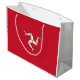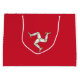 Dieses Design zeigt die Flagge der Insel Man (brattagh Vannin), die aus drei gepanzerten Beinen mit goldenen Sporen auf rotem Hintergrund besteht. Es ist die offizielle Fahne seit 1932 und basiert auf den Manx-Wappen, die aus dem 13. Jahrhundert stammen. Die Verwendung einer Triskelion war bei skandinavischen Kulturen sehr beliebt, und das Symbol wurde möglicherweise von den Nordmännern auf die Insel gebracht. Die Hauptstadt und größte Stadt der Insel Man ist Douglas.