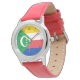 Kinderuhr aus Edelstahl mit rotem Lederarmband