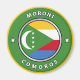Die Fahne der Komoren ist in eine Kreisform eingegossen. Im äußeren Kreis befinden sich der Name des Landes und der Name der Hauptstadt, getrennt durch zwei Ziersterne.