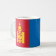 Dieses Design zeigt die Nationalflagge der Mongolei, einem Binnenland in Ostasien. Das Gebiet der Mongolei entspricht in etwa dem historischen Gebiet der Äußeren Mongolei, das manchmal als Verweis auf den aktuellen Staat verwendet wird. Die Mongolei liegt zwischen Russland im Norden und der China im Süden, wo sie die innere mongolische Autonome Region der Volksrepublik China umgibt. Die Hauptstadt der Mongolei ist Ulaanbaatar (auch Ulan Bator genannt), die auch die größte Stadt des Landes ist. Weitere wichtige Städte der Mongolei sind Erdenet, Darkhan, Choibalsan, Mörön, Khovd, Ölgii, Bayankhongor, Arvaikheer, Ulaangom, Sükhbaatar, Sainshand, Dalanzadgad, Tsetserleg, Uliastai, Altai, Züünkharaa, Önserleg. Dörkhaan und Zuunmod.