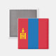 Dieses Design zeigt die Nationalflagge der Mongolei, einem Binnenland in Ostasien. Das Gebiet der Mongolei entspricht in etwa dem historischen Gebiet der Äußeren Mongolei, das manchmal als Verweis auf den aktuellen Staat verwendet wird. Die Mongolei liegt zwischen Russland im Norden und der China im Süden, wo sie die innere mongolische Autonome Region der Volksrepublik China umgibt. Die Hauptstadt der Mongolei ist Ulaanbaatar (auch Ulan Bator genannt), die auch die größte Stadt des Landes ist. Weitere wichtige Städte der Mongolei sind Erdenet, Darkhan, Choibalsan, Mörön, Khovd, Ölgii, Bayankhongor, Arvaikheer, Ulaangom, Sükhbaatar, Sainshand, Dalanzadgad, Tsetserleg, Uliastai, Altai, Züünkharaa, Önserleg. Dörkhaan und Zuunmod.