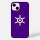 iPhone 14 Fall mit Design mit der Fahne der Präfektur Tokio, edo lila Fahne mit dem Wappen von Tokio Metropole in der Mitte
