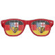 Sonnenbrille mit Saarlandflagge; Design mit horizontaler Trikolore aus Schwarz, Rot und Gelb (golden), mit Wappen des Staat in der Mitte