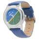 Kinderuhr aus Edelstahl mit blauem Lederarmband