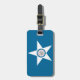 Gepäckmarke mit der Flagge von Houston, Texas; blaue Flagge mit Siegel von Houston in einem weißen Stern, mit einer Abbildung eines Zuges