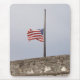 Dieses Design zeigt ein Originalfoto, das die Fahne der USA zeigt, die auf halbem Mast fliegen. Eine Fahne auf halbem Mast zu fliegen wird traditionell als Symbol des Respekts, Trauerns oder Gedenkens gesehen. Die US-Flagge besteht aus dreizehn gleichen horizontalen Streifen rot abwechselnd mit weiß, wobei ein blaues Rechteck im Kanton fünfzig kleine, weiße, fünfzackige Sterne trägt, die in neun horizontalen Reihen angeordnet sind; Reihen von sechs Sternen (von oben und unten) wechseln mit Reihen von fünf Sternen ab. Die 50 Sterne auf der Fahne repräsentieren die 50 Staaten der USA, während die 13 Streifen die dreizehn britischen Kolonien darstellen, die ihre Unabhängigkeit vom Königreich Großbritannien erklärten und damit die ersten Staaten in den USA wurden. Die Fahne der USA wird manchmal als Star-Spangled Banner, Old Glory oder die US Flagge bezeichnet.