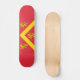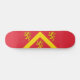Skateboard mit Design mit einer Fahne des historischen Landkreises von Anglesey, in Wales, Großbritannien; rote Fahne mit gelben Zickzack und drei Löwen; die zugeschriebenen Arme von Hwfa ap Cynddelw, das traditionelle Abzeichen des Landkreises