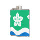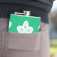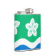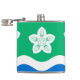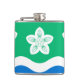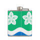 Vinyl umhüllte Flasche mit Design mit einer Fahne des historischen Landkreises von Cumberland, in England, Großbritannien; grüne Fahne mit drei Parnassus-Blume und weiß-blaue Wellen