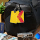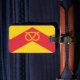 Gepäckmarke mit Design mit der Flagge des historischen Landkreises von Staffordshire in England, Großbritannien; Goldflagge mit Stafford-Knoten Zickzack