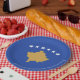 Dieses Design trägt die Flagge des Kosovo (offiziell die Republik Kosovo), eines teilweise anerkannten Staat und umstrittenen Territoriums in Südosteuropa. Der Kosovo ist im Zentrum des Balkans eingeschlossen; die Region grenzt im Norden und Osten an das unangefochtene serbische Hoheitsgebiet, im Südosten an Nordmakedonien, im Südwesten an Albanien und im Westen an Montenegro. Die Hauptstadt und größte Stadt des Kosovo ist Pristina. Weitere wichtige Sehenswürdigkeiten sind die historischen Städte Prizren, Peja, Gjakova, Ferizaj und Gjilan.