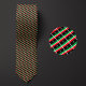 Die Flagge von Libyen Pattern Necktie hebt die nationalen Farben des Landes aus der Ferne hervor, indem sie ein schlaues, verworrenes Design verwendet. Bei einer näheren Überprüfung zeigt das nahtlos wiederholbare Muster winziger Flaggen das nationale Banner des Landes ästhetisch ansprechend.