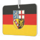 Air Freshener mit Saarlandflagge; Design mit horizontaler Trikolore aus Schwarz, Rot und Gelb (golden), mit Wappen des Staat in der Mitte