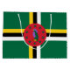 Dieses Design zeigt die Nationalflagge von Dominica (offiziell bekannt als das Commonwealth of Dominica), einem Inselstaat in der Karibik. Die Insel liegt in der Nähe von Guadeloupe im Nordwesten und Martinique im Südosten. Die Hauptstadt Dominica ist Roseau, die sich auf dem Western der Insel befindet und auch ihre größte Stadt ist. Die Nationalflagge Dominicas enthält ein Bild des Papageis von Sisserou, der nur auf Dominica zu finden ist und der Nationalvogel der Insel ist.