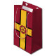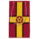 Paper Bag mit Design mit einer Fahne des historischen Landkreises von Northamptonshire in England, Großbritannien; Maronflagge mit Goldkreuz und die traditionelle Rose des Landkreises in der Mitte