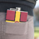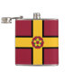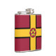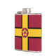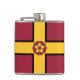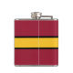 Vinyl umhüllte Flasche mit Design mit einer Fahne des historischen Landkreises von Northamptonshire, in England, Großbritannien; Maronflagge mit Goldkreuz und die traditionelle Rose des Landkreises in der Mitte