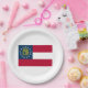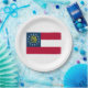 Dieses Design zeigt die Flagge von Georgien, ein Staat in der südöstlichen Region der Vereinigten Staaten. Georgien grenzt im Norden an Tennessee und North Carolina, im Nordosten an South Carolina, im Südosten an den Atlantischen Ozean, im Süden an Florida und im Westen an Alabama. Die Hauptstadt und größte Stadt Georgiens Staat ist Atlanta. Weitere wichtige Städte in Georgien sind Augusta, Kolumbus, Macon, Savannah, Athen, Sandy Springs, Roswell, Johns Creek, Warner Robins, Albany, Alpharetta, Marietta, Smyrna, Valdosta, Brookhaven und Stonecrest.