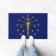 Dieses Design zeigt die Staatsflagge von Indiana, ein US-Staat in den Regionen Mittelwesten und Große Seen in Nordamerika. Sie grenzt im Nordwesten an den See Michigan, im Norden an Michigan, im Osten an Ohio, im Süden und Südosten an den Ohio River und Kentucky sowie im Westen an den Wabash River und Illinois. Indiana wurde am 11. Dezember 1816 als 19. Staat in die Vereinigten Staaten aufgenommen. Die Flagge Indianas wurde von Paul Hadley entworfen und 1917 vom Staat Indiana offiziell adoptiert. Die Fahne besteht aus einer goldenen Fackel, die Freiheit und Erleuchtung repräsentiert; die Strahlen um die Fackel stellen ihren weit reichenden Einfluss dar. Die neunzehn Sterne repräsentieren Indianas Platz als der neunzehnte Staat, den Vereinigten Staaten beizutreten. Die dreizehn Sterne im äußeren Kreislauf symbolisieren die ursprünglichen dreizehn Kolonien, die fünf inneren Sterne repräsentieren die nächsten fünf Staaten, die der Gewerkschaft hinzugefügt werden, und der eine große Stern über der Fackel repräsentiert Indiana. Die Hauptstadt Indiana ist Indianapolis, die auch die größte Stadt des Staat ist. Weitere wichtige Städte in Indiana sind Fort Wayne, Evansville, South Bend, Carmel, Fishers, Bloomington, Hammond, Gary, Lafayette, Muncie, Noblesville, Terre Haute, Greenwood, Kokomo, Anderson, Elkhart, Mishawaka und Lawrence.