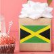 Jamaikanische Fahne über verschiedene Geschenke und Souvenirs.