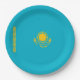 Dieses Design zeichnet sich durch die Nationalflagge Kasachstans (offiziell als Republik Kasachstan bekannt), ein transkontinentales Land, das hauptsächlich in Zentralasien liegt, mit einem kleineren Teil westlich des Urals in Osteuropa. Kasachstan grenzt im Norden an Russland, im Osten an die China und im Süden an Kirgisistan, Usbekistan und Turkmenistan; im Südwesten grenzt es auch an einen großen Teil des Kaspischen Meeres. Kasachstan ist auch sehr nah für die Mongolei, obwohl die beiden Länder keine gemeinsame Grenze haben. Es ist das größte Binnenland der Welt. Die Hauptstadt Kasachstans ist Nur-Sultan, früher Astana genannt. Die größte Stadt Kasachstans ist Almaty. Weitere wichtige Städte in Kasachstan sind Shymkent, Karaganda, Aktobe, Taraz, Pavlodar, Oskemen, Semey und Atyrau.