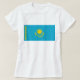 Die Vorderseite dieses T - Shirt zeigt mutig die Kazakhstani-Fahne mit ihren markanten gelben Motiven auf blauem Hintergrund. Hinter dem Bild befindet sich eine attraktive Karte Kasachstans.