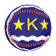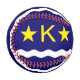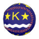 Baseball mit Design mit der Flagge von Kinshasa, Hauptstadt Stadt der Demokratischen Republik Kongo, blaue Flagge mit Weißwelle, zwei goldene Sterne und Buchstabe "K" im Zentrum