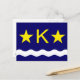Postkarte mit Design mit der Flagge Kinshasas, Hauptstadt Stadt der Demokratischen Republik Kongo, blaue Flagge mit Weißwelle, zwei goldene Sterne und Buchstabe "K" in der Mitte