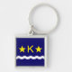Square Schlüsselanhänger mit Design mit Fahne von Kinshasa, Hauptstadt Stadt der Demokratischen Republik Kongo, blaue Flagge mit Weißwelle, zwei goldene Sterne und Buchstabe "K" im Zentrum