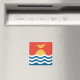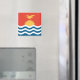 Große Kiribati-Flagge. Wellen, Sonne und ein schöner goldener Vogel. Große Souvenirs aus Kiribati und phantastische Produkte mit der nationalen Flagge von Kiribati.